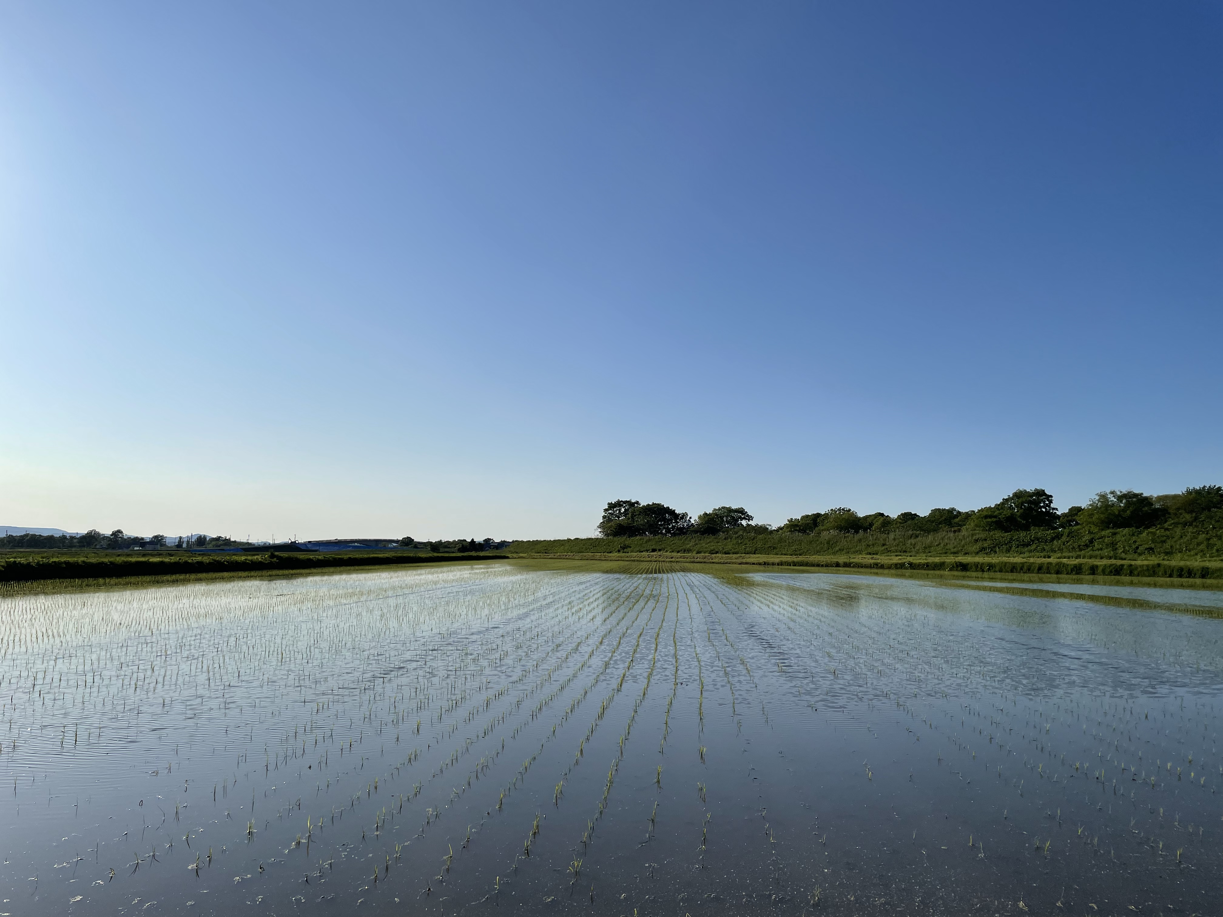 田植え後の田んぼの風景。本当に綺麗です。